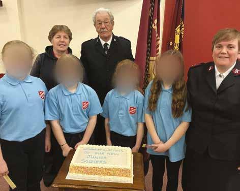 ON Covenant Sunday, Anna, Amy, Lily and Lexi were enrolled as junior soldiers by corps leader Captain Lisa Cunningham. A cake was enjoyed at the end of the morning meeting as we celebrated these young people and their commitment to following the Lord. They are pictured with Sunday school leader Sharon Winter, who led them through their junior soldier preparation classes, and George Parks, who held the flag. – LC