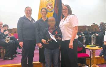 JOSH was enrolled as a junior soldier by corps leader Major Keely Standley, after being introduced by Junior Soldiers Sergeant Karenza Lloyd. Josh testified about how he loves to come to the Army to be closer to God and that he prays to him when he wants help. He sang part of his favourite song, ‘This Little Light of Mine’, as he wants to be a little shining light for God in the world. Josh is pictured with Young People’s Sergeant-Major Talitha Ruddock, Junior Soldiers Sergeant Karenza, Major Keely and Colour Sergeant Edward Dixon. – RO