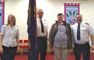 CHARLIE Clayton was welcomed as an adherent by the then corps officers Majors Chris and Liesl Baldwin. Pictured with them is newly commissioned Colour Sergeant Andrew King. – LB