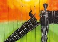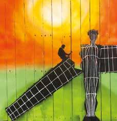 The second picture, At Our Labours, is of a man building or dismantling the Angel of the North, which here has a crown of thorns on its head. This represents our labours; either we are building God’s Kingdom, or we are destroying it.