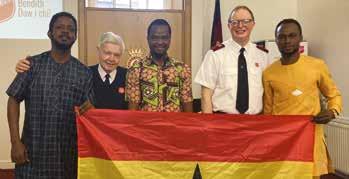 ABERYSTWYTH Marking Ghana’s Independence Day on 6 March, Ghanaian students, Austin, Frank and Michael shared something of life in Ghana and sang their national anthem as part of morning worship. This concluded a week of international ministry focus for the corps, who hosted an ecumenical lunch to support Christian Aid, and hosted a World Day of Prayer service for churches across the town. Pictured alongside Austin, Frank and Michael are Corps Sergeant-Major Mark Mainwaring and corps leader Lieutenant Paul Sass. – PS