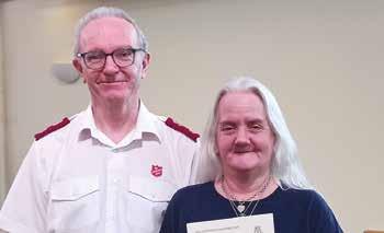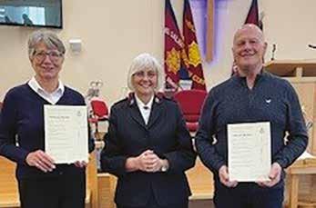 THERE was great joy as Carol Mahon was enrolled as a soldier and Russell Boyd was welcomed as an adherent. Both testified to the difference that God is making in their lives and shared hymns that had real meaning for them. The commitment ceremonies were part of a wonderful Spirit-filled meeting led by Major Fiona Partland (Central and Southern Scotland DHQ). God is good! – RR