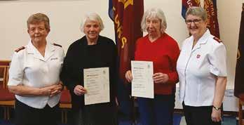 RUTH Miller and Jean Lovesley were welcomed as adherents by corps leader Major Katrina Greetham and Major Yvonne Jones, who was instrumental in their journeys towards this step of faith. Ruth has been worshipping at the corps for some time and felt it was the right time to be recognised as an adherent. Jean came to the Art Club a few months ago, stayed for lunch club and afternoon fellowship, attended worship that Sunday and has become an integral part of the corps family. – KG