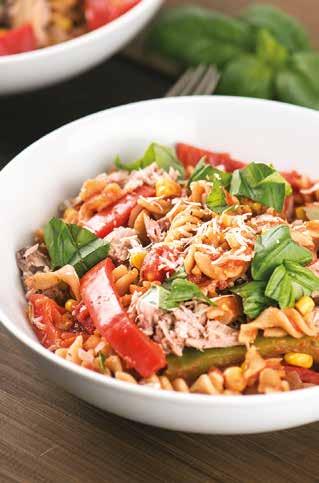 Drain the pasta and add to the sauce. Mix in the sweetcorn. Just before serving, add the tuna and stir in gently to keep the fish in chunks, then place in bowls and sprinkle with the Parmesan and some torn basil leaves, to serve.