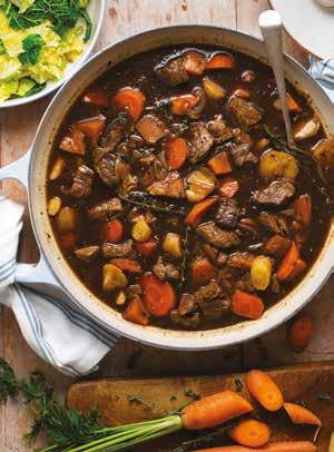 Add the beef, stock and water to the pan and bring to the boil. Cover and