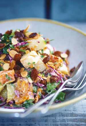 Boil the chopped potatoes until tender. Add to the tray of sweet potatoes, stir and return to the oven. Roast until the potatoes are lightly coloured, then remove from the oven and leave to cool.