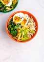 Heat the oil in a large non-stick pan over a mediumhigh heat and cook the onion, garlic, mushrooms and pepper for 5 minutes, stirring occasionally.