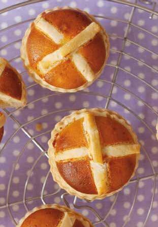 Roll out the pastry trimmings on a floured surface and cut into 1cm-wide strips. Brush with a little milk, then place a pastry cross over each tart. Brush again with milk.