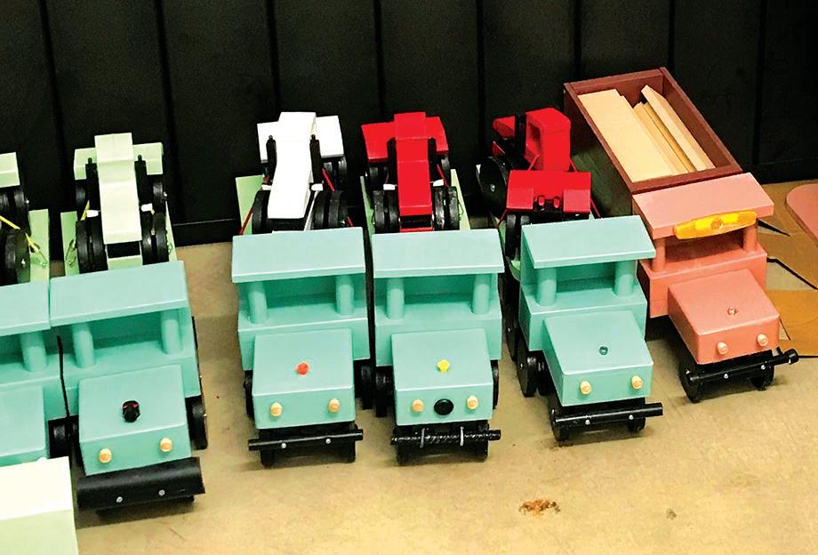 The church’s gymnasium is turned into a North Pole toy shop, complete with row upon row of toys.