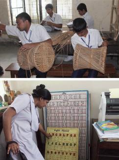 Duringschoolhours,someofthe visuallyimpaired boysattendaclassthat teachesthemhowtomakestoolsoutof bamboowhichcanthenbesoldinlocal markets.isopportunityprovidesalife skillthattheboyswill alwayshave,andfor some,thismaybeameansofsupporting themselvesinthefuture