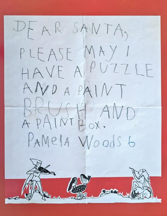 In her first letter to Santa since she left her home in England, Pam asked for a puzzle, a paint brush and a paint box