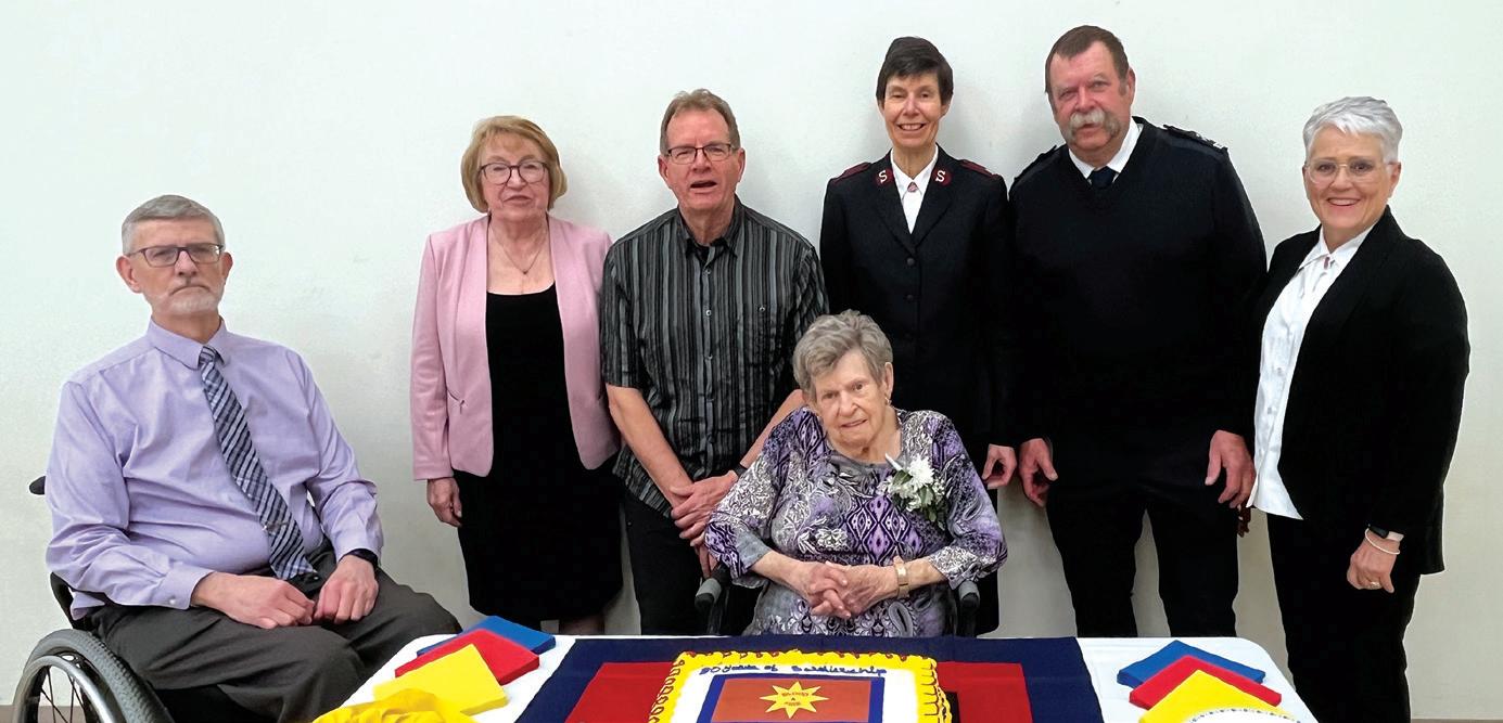 The service was supported by territorial leadership, including Commissioners Lee and Debbie Graves, territorial commander and territorial president of women’s ministries, and Colonels John and Lani Chamness, then chief secretary and territorial secretary for spiritual life development, as well as leadership and faculty from the College for Officer Training (CFOT). The music for the afternoon was presented by the Canadian Staff Band (CSB), conducted by Bandmaster Andrew Burditt, the Canadian Staff Songsters (CSS), under the direction of Songster Leader Cathie Koehnen, and NEON, led by Simon Gough.