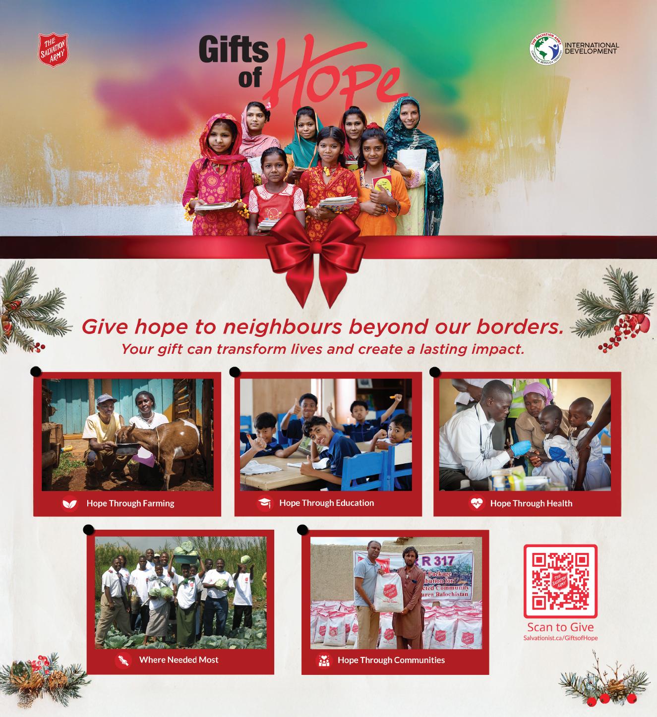 Whether in honour of a loved one or in celebration of a special occasion, your tax-deductible Gift of Hope helps build stronger, more resilient communities.