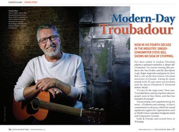 Thanks for your interview with Steve Bell (“Modern-Day Troubadour,” July/August). He is a personal favourite. His songs are always thoughtful. They make room for joy, sorrow and the complexities that come with following Jesus. What’s more, he’s a faithful, active Christian who uses his gifts to benefit people who are vulnerable. Thanks for highlighting this connection with the mission, vision and values of The Salvation Army.