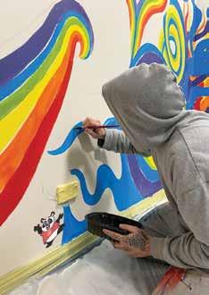 Jordan adds some finishing touches to a wall mural.