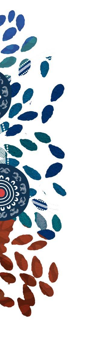 These elements sit on a foundational layer of dot artwork representative of Country — the colours mutual to the ground on which we stand. For Aboriginal and Torres Strait Islander peoples, being on Country means staying connected to culture, lore, community/ family, faith, pride and the feeling of being grounded.
