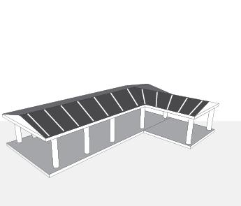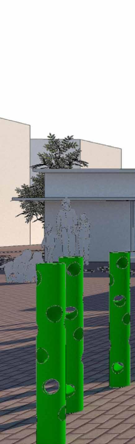 2. The proposal is cheap as compared to above proposal, and is more practical as teh coloured flooring may make increase the project estimate. the bollards and seating arrangements are same, with tensile roofing instead of a pergola. the bollards are used as seegregation instead of honeyvomb structured walls