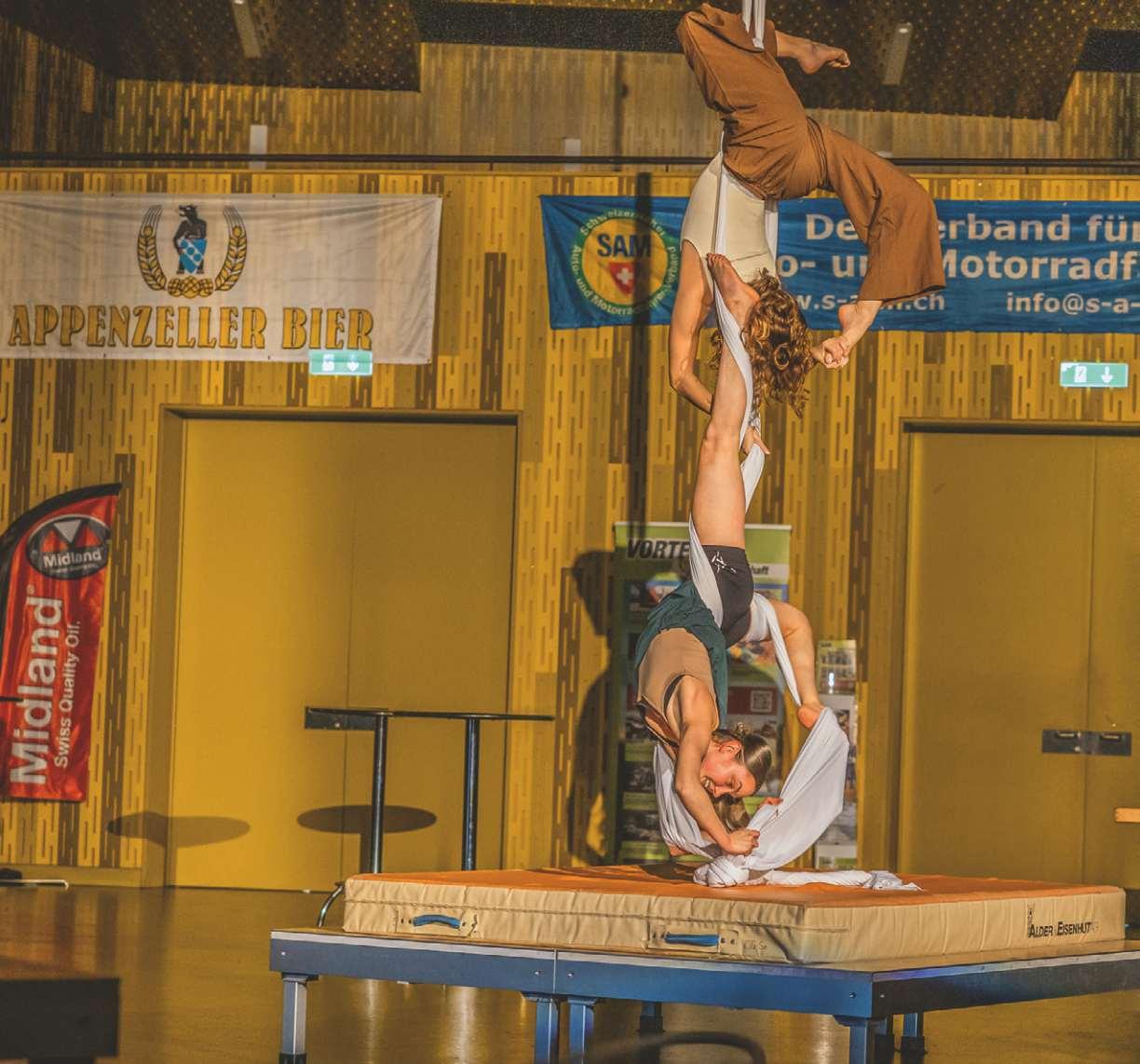 Der von der Stadt Amriswil offerierte Apéro führte über zum gemeinsamen Mittagessen, das allen bestens zu munden schien Es war auch wirklich lecker Danach hiess es, zurücklehnen und geniessen Oder staunen, denn was die Mädchen und jungen Frauen von Co-Dance an Turngeräten oder einfach auf dem Boden boten, war schon recht akrobatisch Der Verein aus dem Raum Uttwil kombiniert nach eigenen Angaben Tanzen und mehr. Co-Dance ist ein Teamsport, mehr als 200 Vereinsmitglieder trainieren wöchentlich in verschiedenen Gruppen – Tanz, Akrobatik, Bodenturnen und Fitness Tosender Applaus war den Turnerinnen sicher.