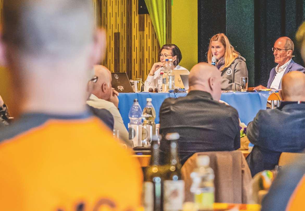 Nun war es Zeit, die traktandierten Geschäfte in Angriff zu nehmen Derzeit sind 44 Sektionen dem SAM angeschlossen, mit total 142 Mandatsstimmen, Kommissionen und Ehrenmitglieder eingerechnet. Davon waren 26 vertreten, mit 104 Mandatsstimmen Die demonstrierten an diesem Vormittag Einigkeit. Die versierte Geschäftsstellenleiterin Jessica Wegmann erläuterte die Jahresrechnung, äusserte aber gleich einen Wunsch: «Schickt bei Vergünstigungen nicht einfach die Rechnung per Post, sondern verwendet dafür bitte das entsprechende Formular.» Während die Verbandsrechnung und der Sporthilfsfonds mit Gewinn abschlossen, resultierte beim Sport und der Sportförderung ein nicht unerheblicher Verlust. Einerseits wegen des Neuaufbaus der dritten Zeitmessanlage, anderseits wegen des neuen Champions-Dinners. Die Aufteilung auf zwei Abende kam bei den Sportlern sehr gut an, kostete aber auch deutlich mehr als budgetiert. Die Zentralverwalterin dazu mit einem Augenzwinkern: «Vielleicht brauchen wir bald das Hallenstadion.»