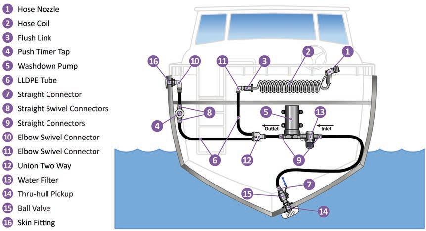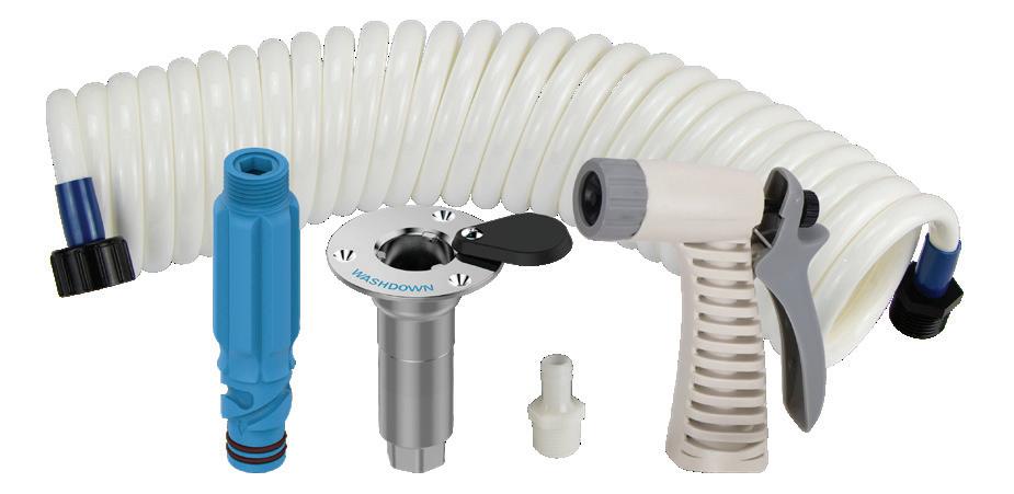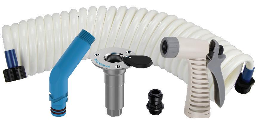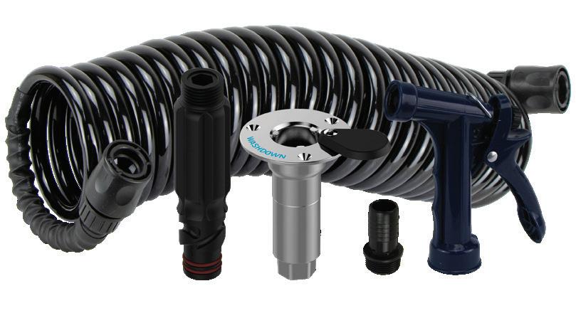 • Swivel wing nut connects directly to the outlet port (1/2"NPSM) on any Shurflo® deck wash pump.