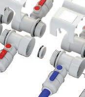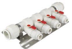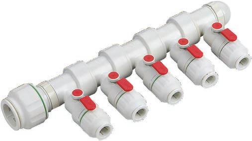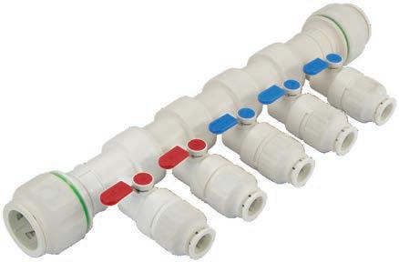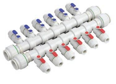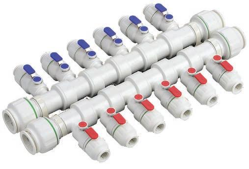 • Manifolds are supplied with both blue (cold) and red (hot) valve cap and handle covers.