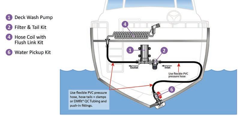 The Deck Wash Pump Systems illustrated below are divided into three typical installations: Simply make a choice of the most suitable Deck Wash Pump , by flow rate and voltage (refer to page 452).