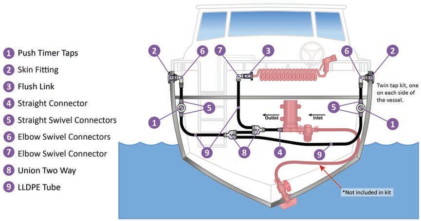 Add a choice of water pick-up kit (refer to page 459) or water pick-up with dual port live bait pump kit (refer to page 461), applicable to the relevant plumbing system.