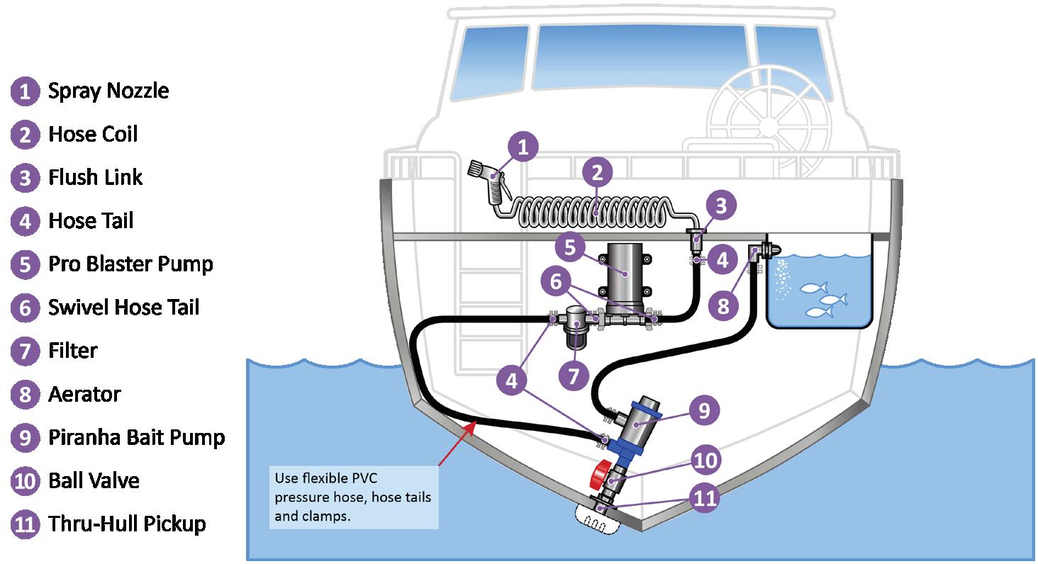 • The Pro Baitmaster™ II Washdown/Livewell Pumps can be used for washdown or livewell applications and general water transfer.