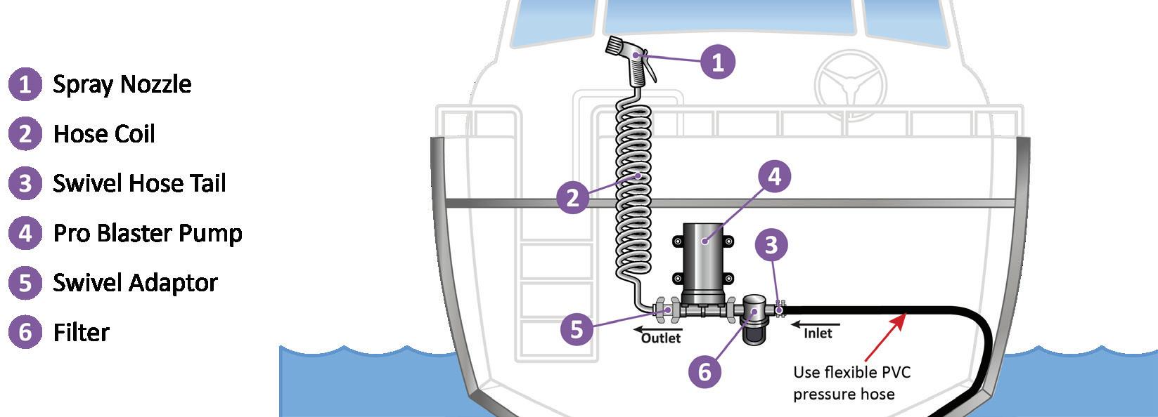 • Shurflo® Pro Blaster Pumps are ideal for washing down the grimiest deck, fish box scaling, and anchor chain cleaning.