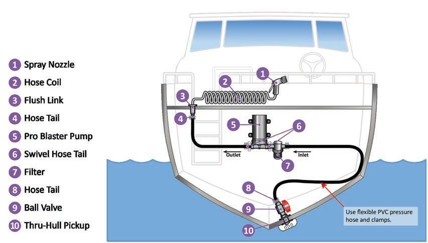 • 3/8" I.D. hose coil kits are not recommended for use with the Shurflo® ProBlaster 18.9L/min deck wash pump.