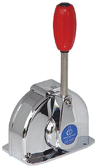 • These are heavy duty units with a positive brake and shut off position for heavy throttle. The throttle lever (red) is activated by turning in a clockwise direction. The gear lever (black) has a detent so that the operator can feel the positions of neutral, forward and reverse.