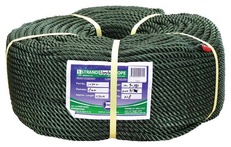 • Often used in the transportation and logistics industry in truck canvases and as a general tie down cordage.
