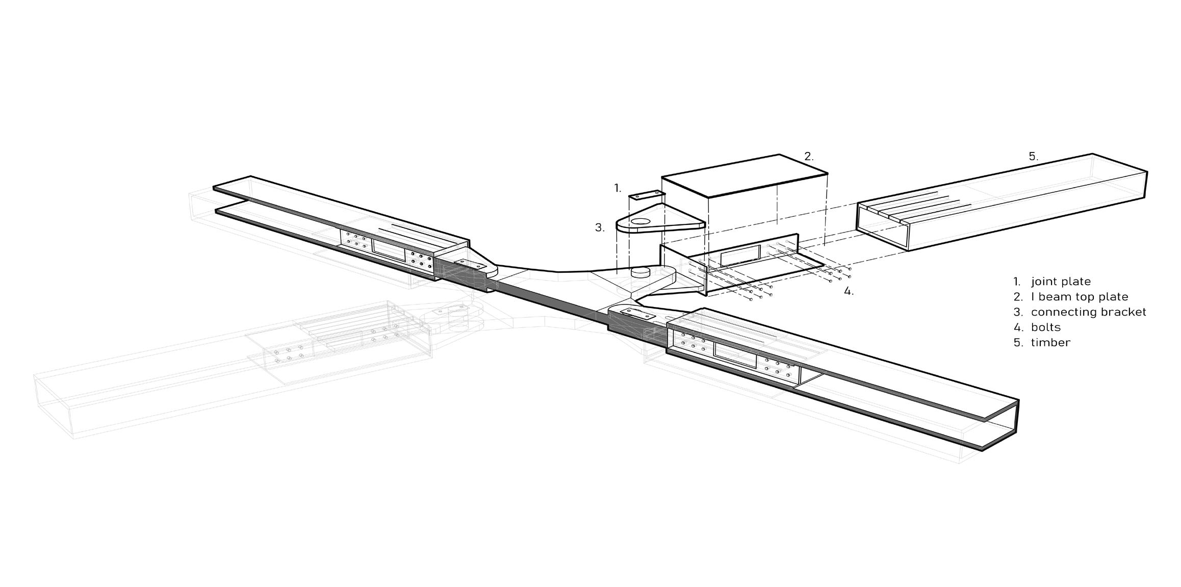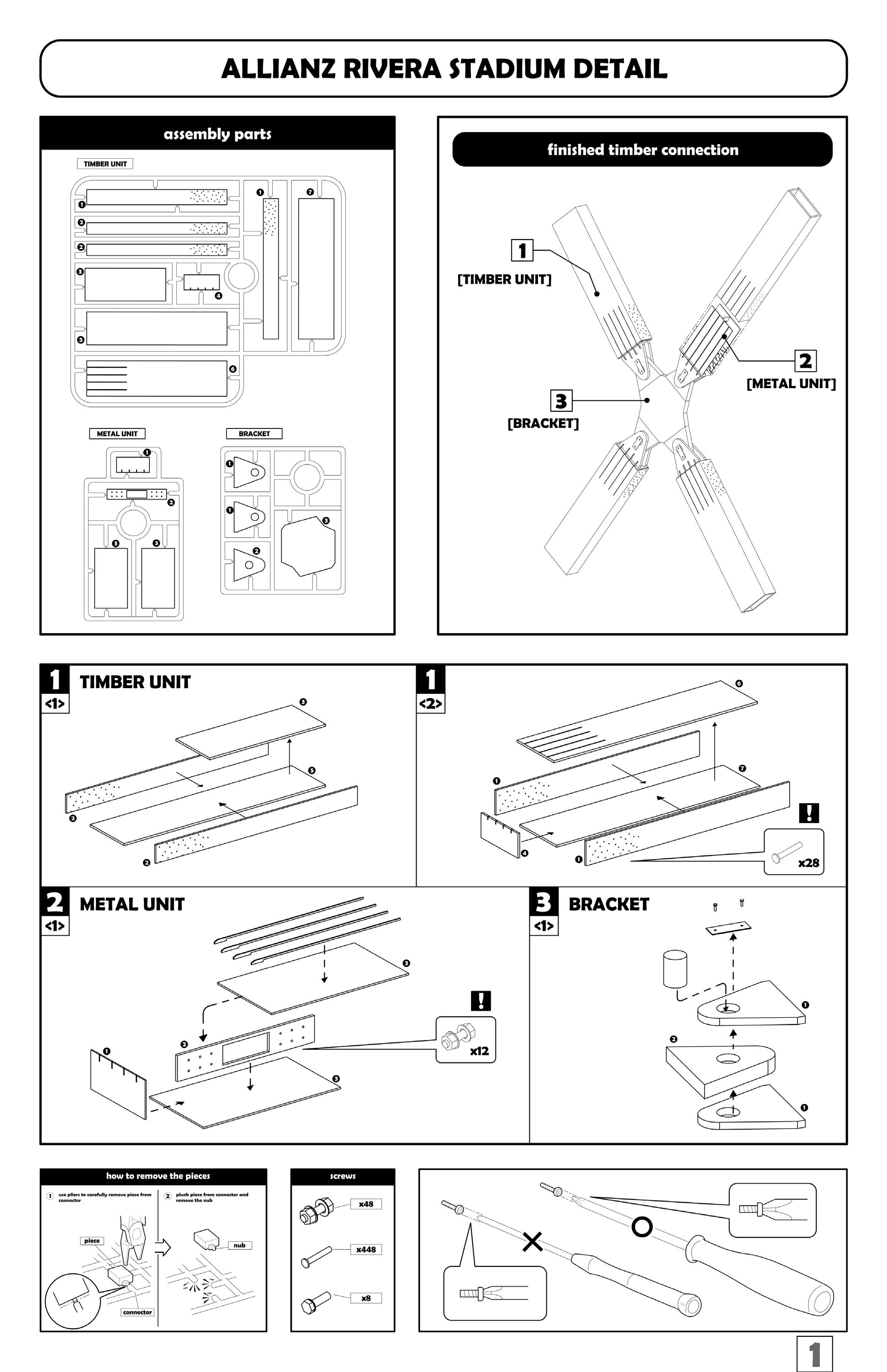extracted the timber-metal frame, exploding it into its bare comoponents and designing a kit of parts reminiscient of a bandai gundam manual.