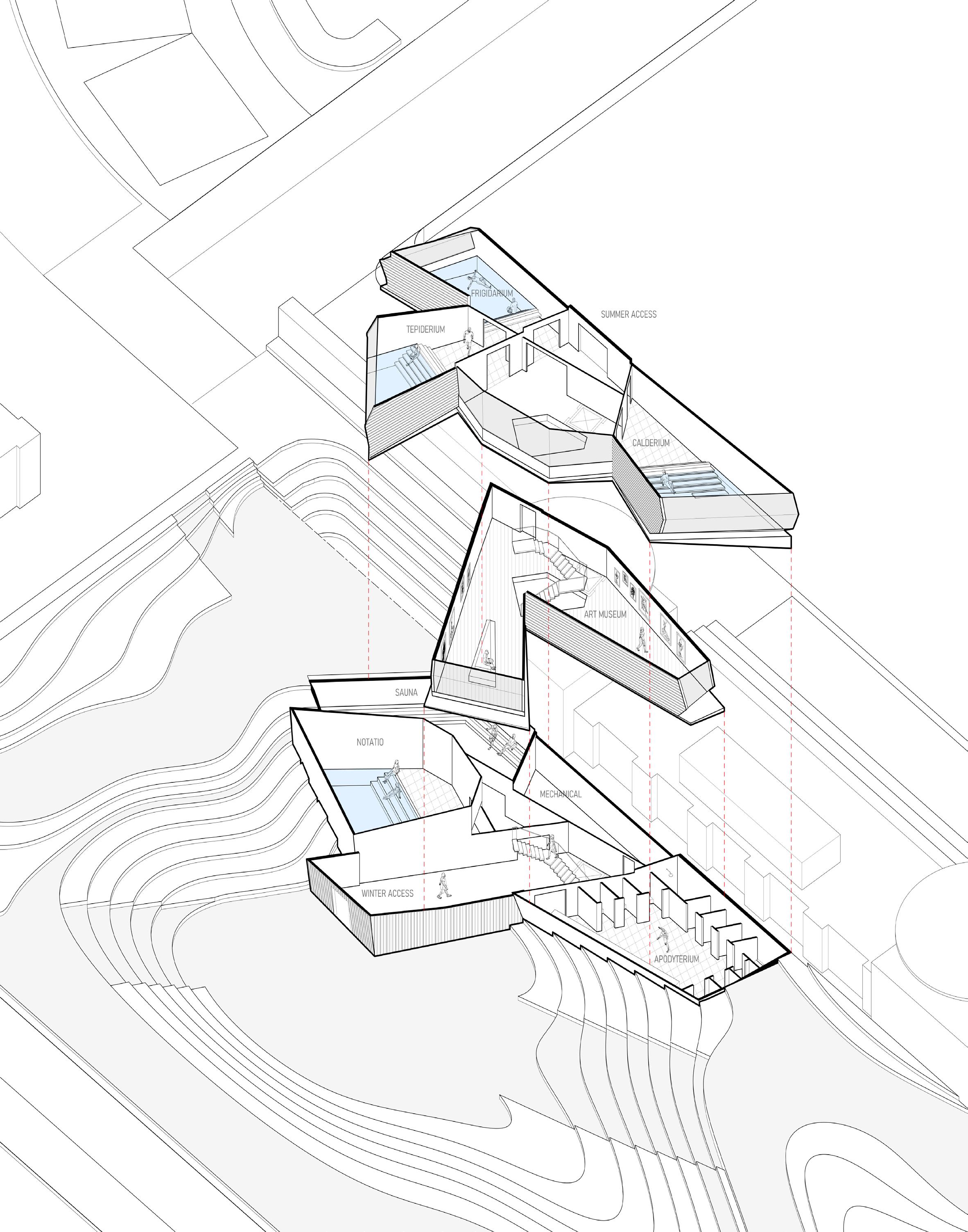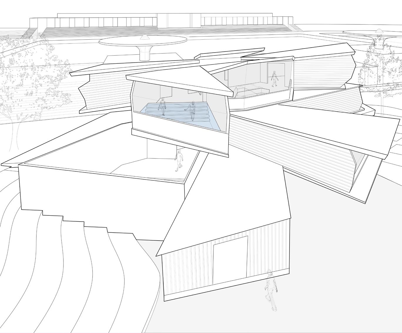 elevated perception is the embrace of the multitude of sight lines experienced at the varying levels of astoria pool. from the public circulation seen at ground level to the grand views of the robert f. kennedy bridge, multiple aspects of public space are experienced.