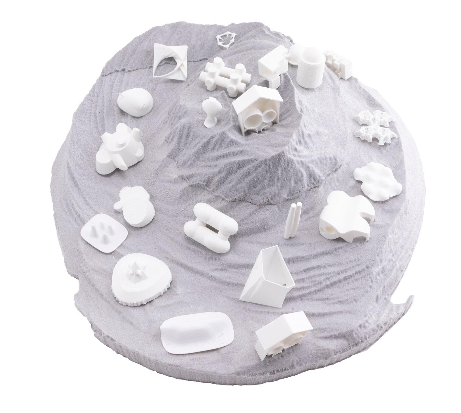 for OUTERSCAPES, we hosted a design challenge dedicated to imagining and modeling 3-d massings to be theoretically built on mars. we then collected the digital work submitted and 3-d printed it to later be placed upon a CNC mars landscape base to be discussed and presented at the lecture.