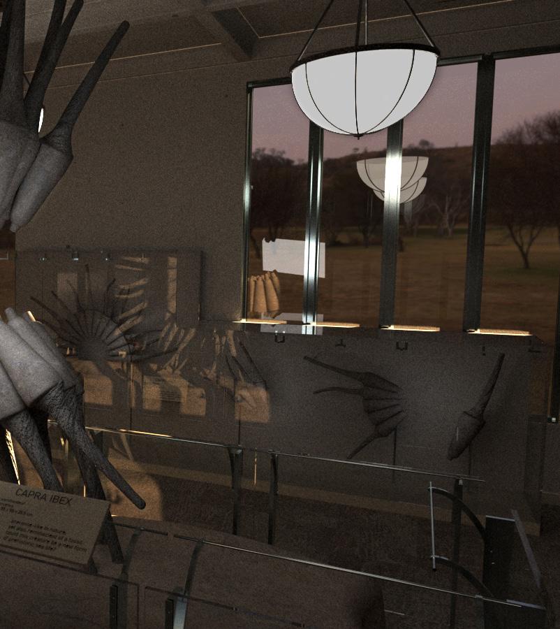 capra ibex was inspired by the ceramic work of ursula commandeur and placed in a modeled environment inspired by the fossil exhibit at the museum of natural history.
