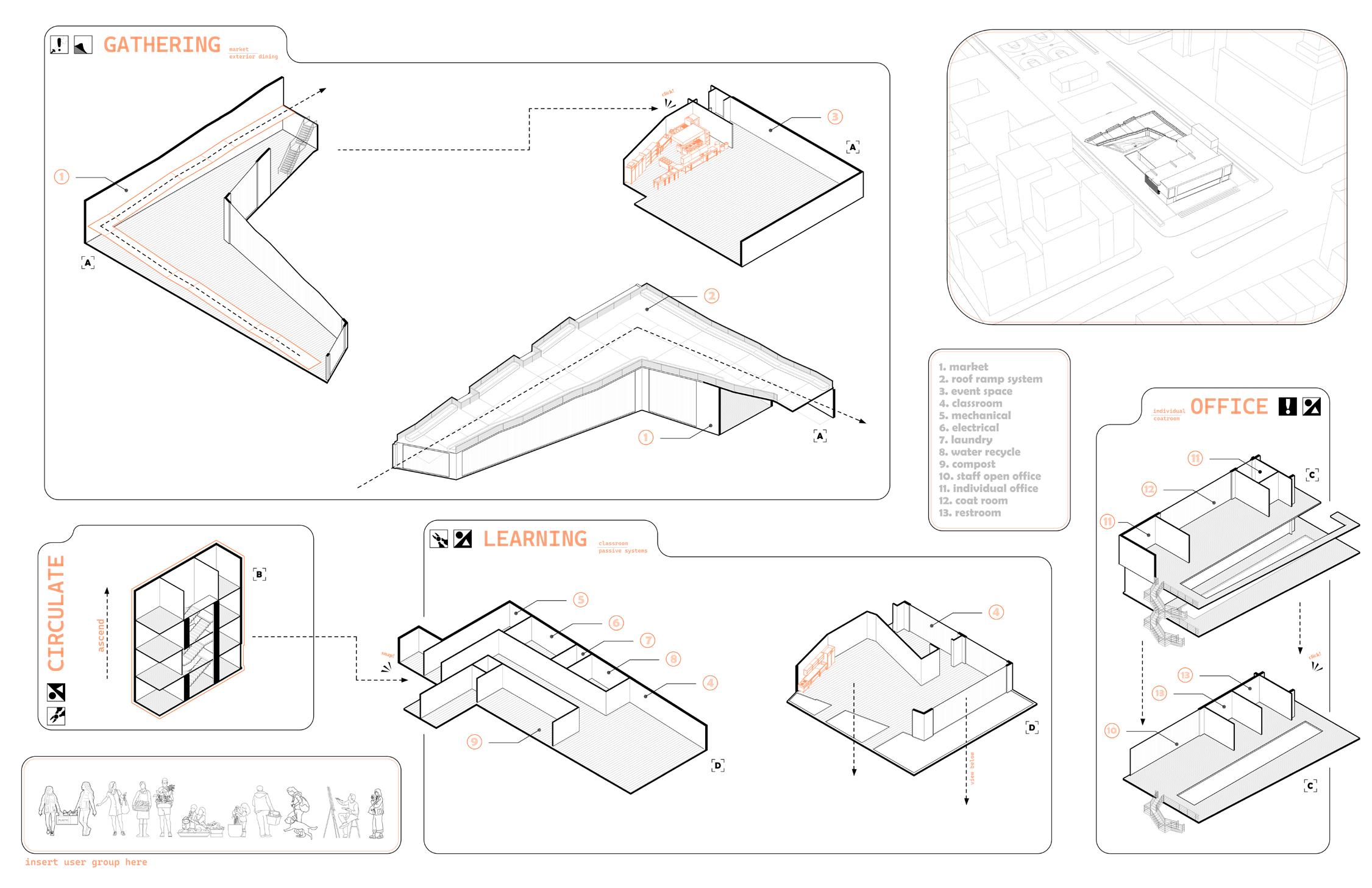 program : market + community center location : sara d roosevelt park, manhattan collaboration with : ashwati bartaria