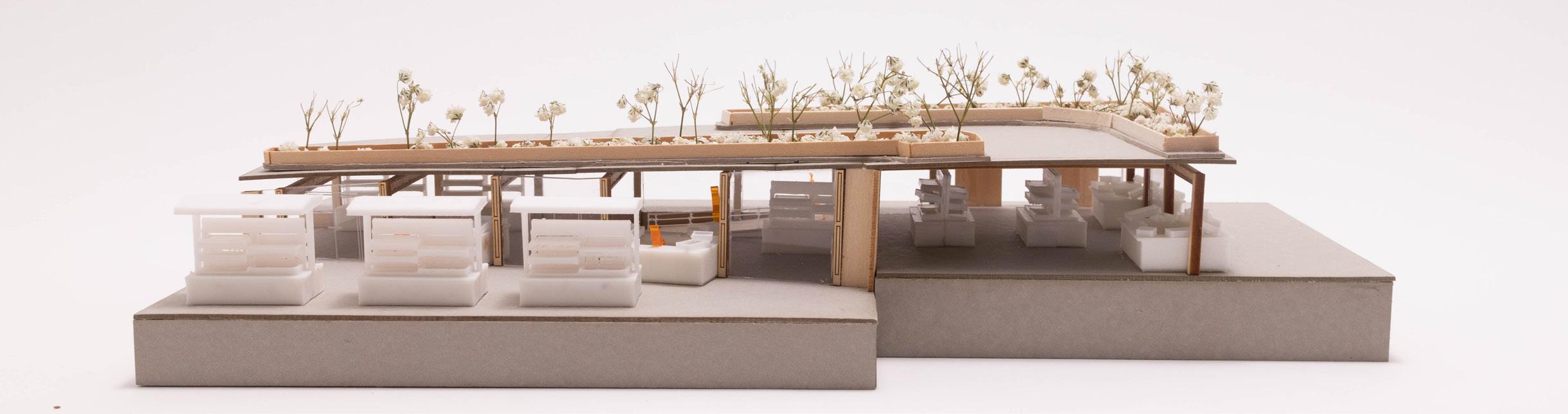 This fresh food market and community learning center, positioned at the northern tip of Sara D. Roosevelt Park, serves as both a resource and a symbol of sustainable living for the Lower East Side. The seven-block park itself acts as a natural gathering place for the community, bordered by low-income NYCHA housing, luxury apartments, and public school. This project introduces a semi-commercial fresh food market with a community learning center to meet these needs, creating a space where residents can learn about nutrition, cooking, and sustainable gardening practices.