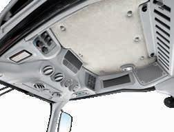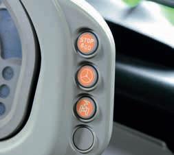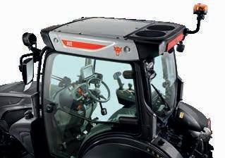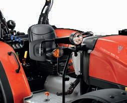 geräumigen 4-Pfosten Kabine. Sie bietet eine außergewöhnliche Übersicht und eine angenehme Arbeitsumgebung, auch an langen Arbeitstagen. Standardausstattungen wie Klimaanlage, Radio und die Kabinenfederung auf Hydro-Silent-Blöcken sorgen für Komfort, während das Vierradbremssystem erhöhte Sicherheit auf jedem Untergrund garantiert.