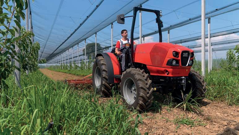 In den neuen Frutteto S/V-Traktoren sind die FARMotion-Motoren 35 und 45 Abgasstufe V, mit 3- oder 4-Zylindern verbaut. Erstere sorgen für einen kürzeren Radstand, letztere für höchste Leistung auch bei Anbaugeräten mit hohem Leistungsbedarf. Zur Wahl stehen verschiedene Getriebekonfigurationen, eine Reihe unterschiedlicher Reifen- und Hydrauliklayouts, kombiniert mit kompakten Abmessungen und beeindruckender Leistung: Die Frutteto S/V Modelle sind voll und ganz auf die Anforderungen im Obst- und Weinanbau ausgelegt. Dank des großen Lenkeinschlagwinkels, der hervorragenden Wendigkeit und des kompakten Designs sind die Frutteto S/V-Traktoren wie gemacht, um die Bedürfnisse von modernen Landwirten zu erfüllen. Effizienz, Wendigkeit und Komfort sind die Hauptmerkmale, die den Frutteto S/V auszeichnen. Die Frutteto S sind jetzt auch mit einem speziell geformten Kraftstofftank erhältlich, der für den Einsatz auf schmalen Weinbergen den Einbau von Anbaugeräten im Zwischenachsbereich ermöglicht.