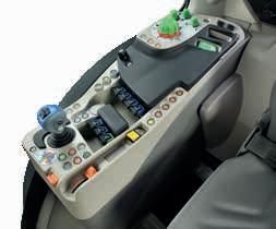 Je nach Traktormodell Frontlader-Joystick mit Powershift-Tasten. Stop&Go, SDD-Schnelllenksystem und alle Bedienelemente für den Frontladerbetrieb sind voll integriert und leicht erreichbar.