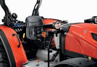por terrenos embarrados. El cuadro de instrumentos tiene un diseño racional y agradable a la vista, con instrumentos de fácil lectura, incluso en condiciones de mucha luz ambiental, que proporcionan al operador información clara e inmediata sobre el estado operativo y las funciones del tractor. El arco de seguridad trasero de dos montantes está disponible en dos versiones diferentes, con una sección superior abatible parcial o totalmente para poder aparcar el tractor en lugares con poca altura. Los tractores Explorer TB pueden equiparse opcionalmente con un juego de faros LED, instalados en el capó y en la plataforma. Las luces LED aumentan la visibilidad cuando se trabaja de noche. Como novedad, los retrovisores pueden instalarse en la parte delantera de la plataforma para aumentar también la visibilidad trasera.