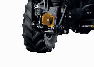 El robusto eje delantero de alta resistencia, desarrollado y construido específicamente para esta clase de tractores, está equipado con frenos de