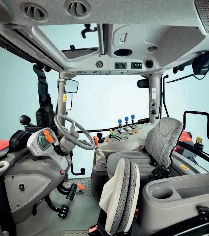 telescópica, juntamente com o banco suspenso (com várias regulações), garantem que cada condutor pode sempre encontrar a posição de condução perfeita. Além disso, o baixo nível de ruído, os materiais de alta qualidade e a disposição extremamente ergonómica dos comandos contribuem para a posição de liderança desta cabina no seu segmento. A cabina também pode ser equipada com um prático suporte,