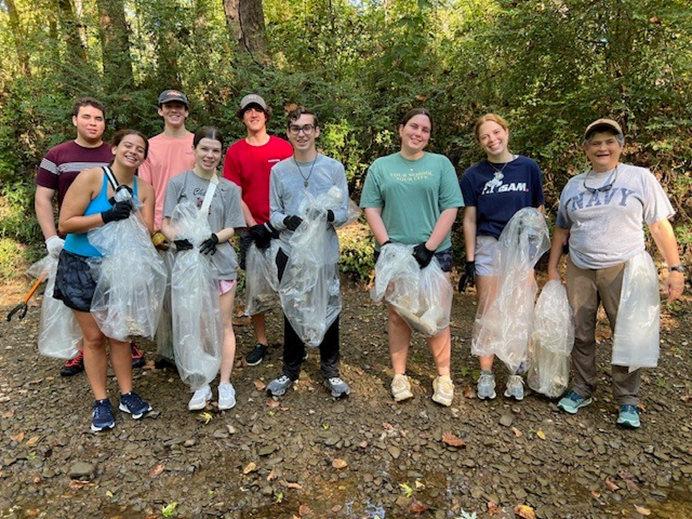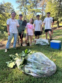 Dr. Kristin Bakkegard and Samford students from across campus joined faculty at the Friends of Shades Creek Fall Cleanup to make a difference right in our own backyard! Together, they picked up trash and removed invasive taro along the creek that runs past Samford and flows into the Cahaba River one of the most biodiverse rivers in the U.S.