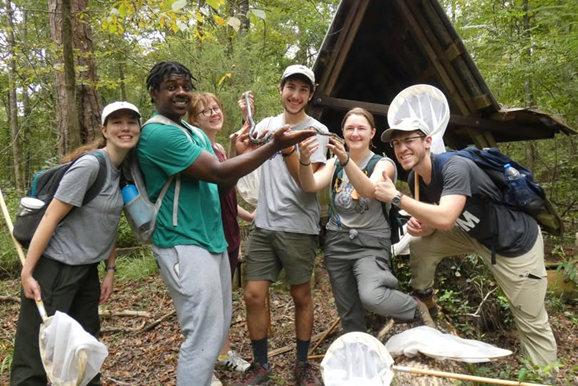 Did Someone say Snakes? Students in Dr. Kristin Bakkegard’s Vertebrate Zoology class capture a rat snake for a class project