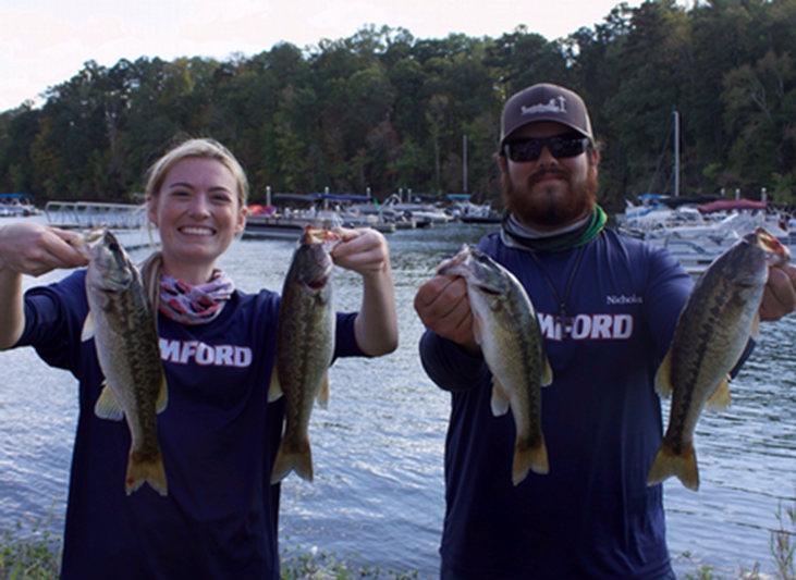 Left: Juniors Katie Burnett (Philosophy) and Nico Foster (Marine Science) competed in the 2025 Auburn Open Series at Lake Martin. Under the guidance of Dr. Anthony Overton, chair of the Biological and Environmental Sciences Department, Katie and Nico represent the new Samford Fishing Club. If you’re interested in joining, contact Dr. Overton (aoverton@samford.edu) and follow them on Instagram @samford fishingclub