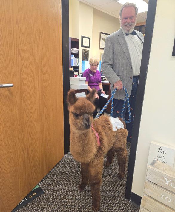 Dr. Christenberry brought a unique guest speaker, Hazel the Llama, to his class for a fun learning opportunity!