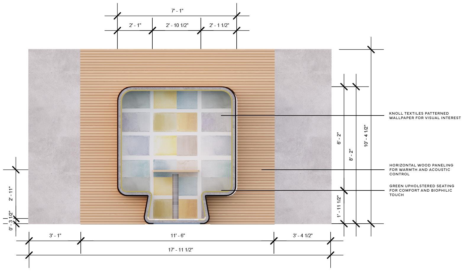 Wellness room offers a dedicated quiet retreat for prayer, meditation, stretching, or therapy, supporting emotional regulation.