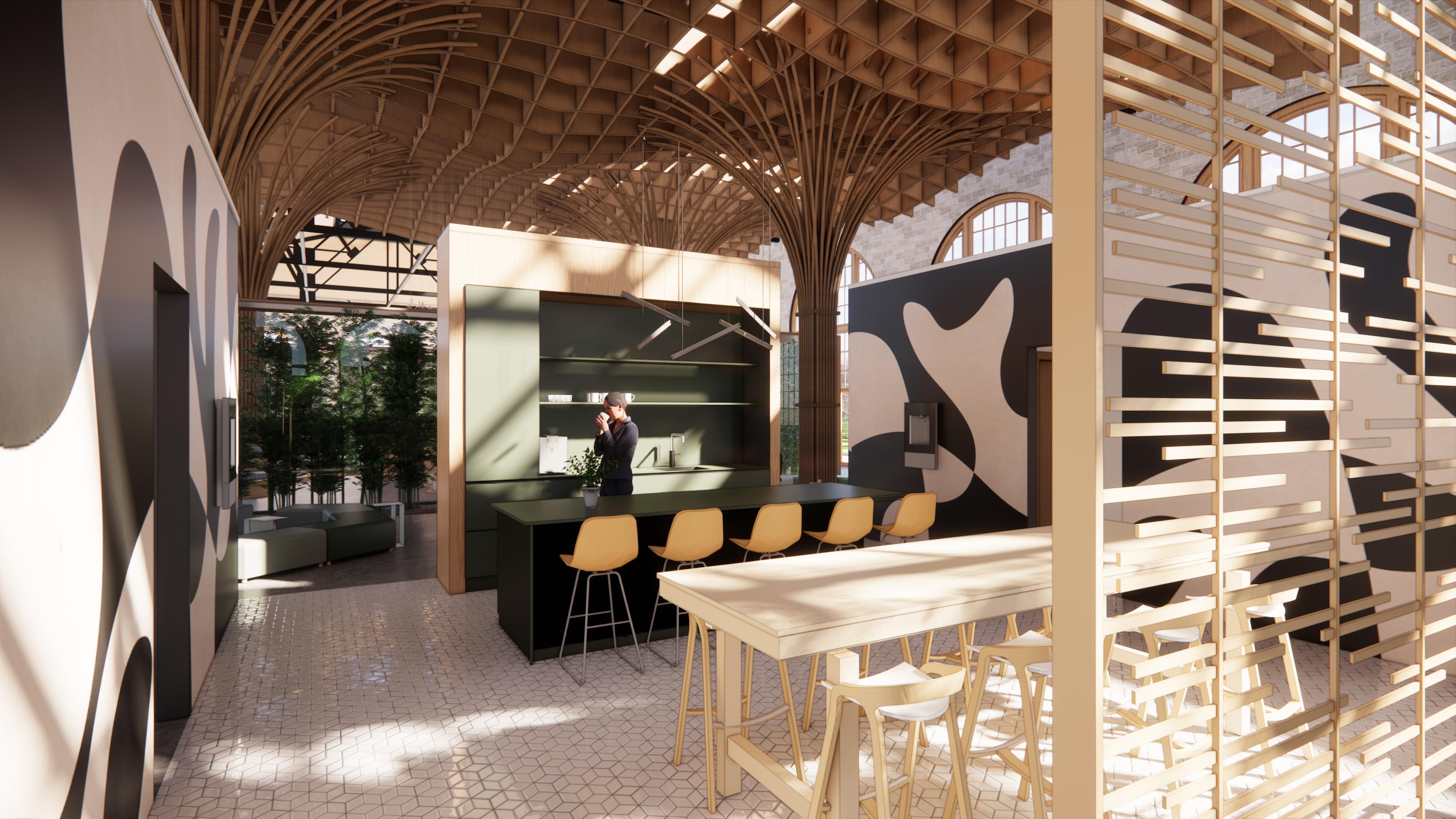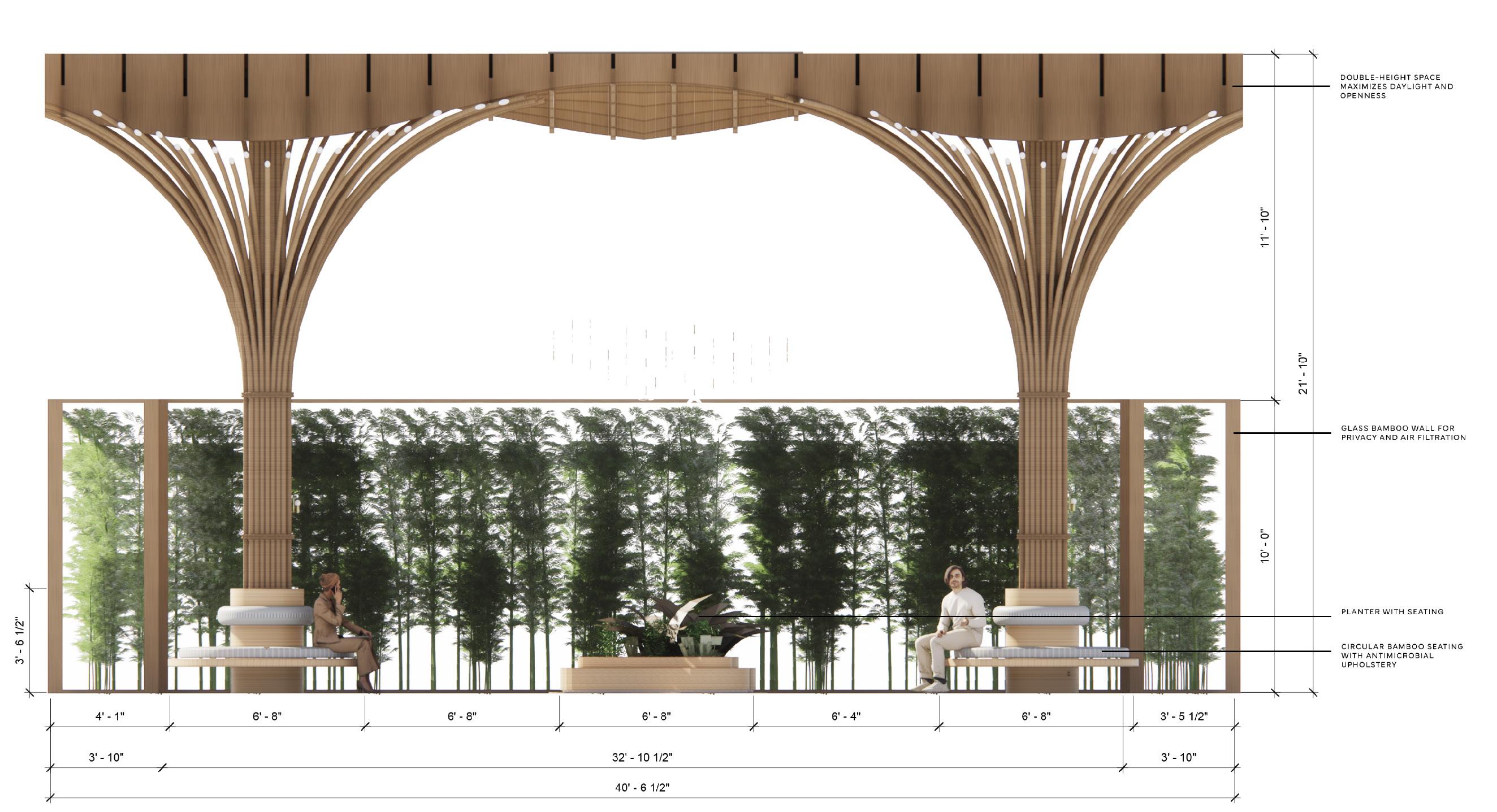 The WWF Office Design project reimagines the workplace as a restorative, nature-connected environment that supports the mission of the World Wildlife Fund. Rooted in principles of sustainability, biophilic design, and wellness, this office space fosters a strong connection between people and nature while promoting comfort, focus, and collaboration. The design features enclosed bamboo partition connected with the HVAC system, a vertical green wall, and abundant natural daylight to enhance air quality, regulate temperature, and bring greenery into the built environment. A clear public-to-private spatial sequence ensures intuitive circulation and supports a balanced work experience in a calm, eco-conscious setting.